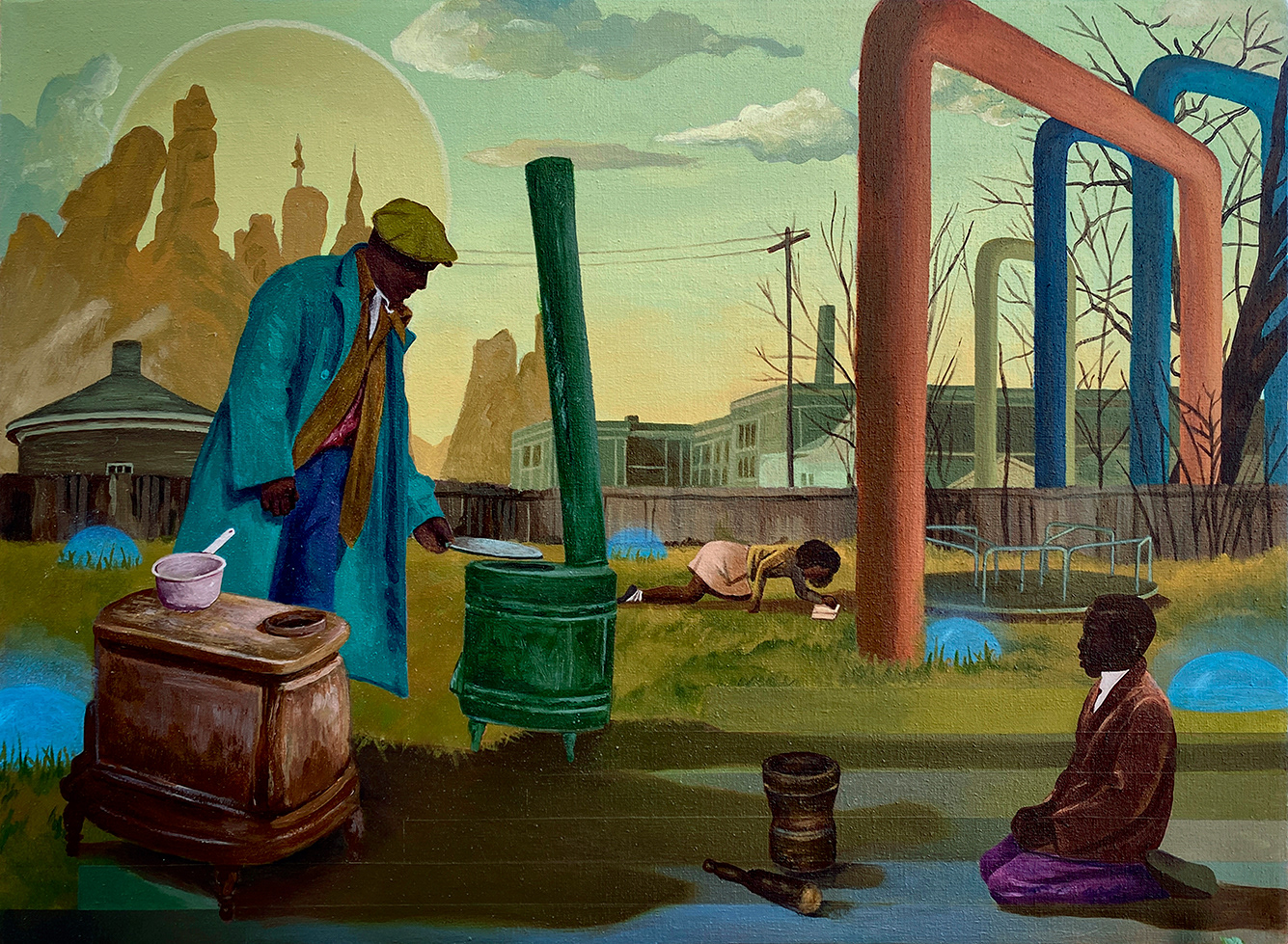 "Inner City Dreamscape", Acrylic, Flashe & Sand on Linen, 2024, 22 x 30